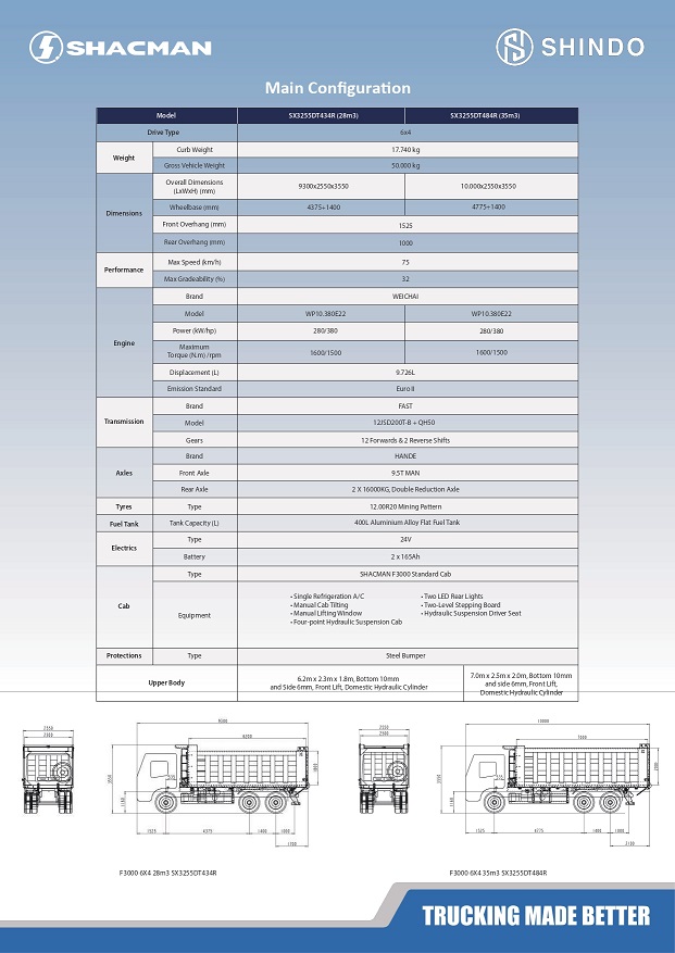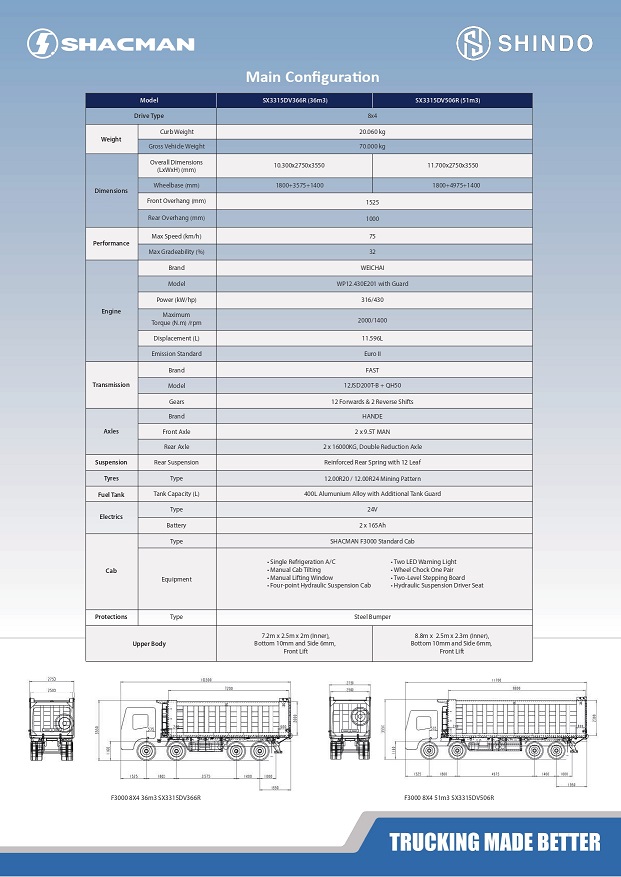 Performa Maksimal untuk Tugas Terberat SHACMAN F3000 dirancang sebagai truk niaga berat berteknologi tinggi. Menggabungkan mesin Weichai Power, transmisi FAST, dan gandar teknologi MAN, truk ini menawarkan sistem penggerak yang efisien dan tahan lama. Cocok untuk sektor konstruksi, pertambangan, dan logistik.